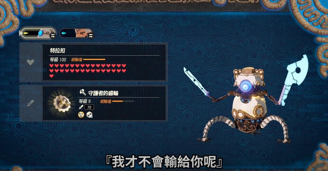 最有趣的就是特拉扣在『切換』對話中,呼叫林克後,他的反應居然不是只有『嗯』『蛤』,居然回了一個『切』,還帶點不屑的語氣,真是笑死我。有興趣的下面有附上timecode。可以自己看。